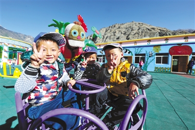 林芝市朗县洞嘎镇小学附属幼儿园的孩子们在园内玩耍。记者 旦增西旦 摄