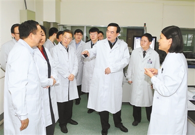 在自治区人民医院检验科,陈全国详细了解科室装备水平、专业技术能力和业务开展情况。援藏医疗专家、检验中心副主任邱玲介绍说,开展医疗人才“组团式”援 藏后,他们帮助自治区人民医院建立了临床检验中心,填补了自治区医疗机构的空白。陈全国对此给予充分肯定。他指出,医疗人才“组团式”援藏使全区医疗卫生 水平有了革命性的提升,让各族群众享受到了高水平的医疗服务,是顺民意得民心的大好事,是切实际接地气的大实事。要总结成功经验,加大工作力度,不断开创 医疗人才“组团式”援藏工作新局面。听说邱玲不仅全身心投入医疗援助工作,还在紧急时刻为危重病人献血,陈全国称赞她是白求恩式的好医生,是西藏各族人民爱戴的好门巴。