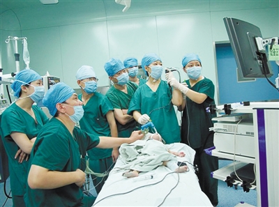 北京市“组团式”援藏医疗队到达拉萨市人民医院不久后,医院接诊了一名患“肺炎”的两岁小孩,然而经过检查,却发现症状与肺炎有一些区别。医疗队杨海明大夫经过仔细检查怀疑是小孩肺里有异物,现在在很多医院,这种情况只需将孩子肺里的异物取出来即可慢慢恢复,这个过程需要用到儿童支气管镜,不过,当时拉萨市人民医院里并没有这套设备,经查询发现自治区人民医院恰好有此套设备。