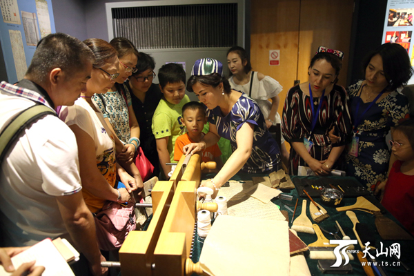 7月26日,在新疆博物馆,市民正在参观“民族遗珍 书香中国—中国少数民族古籍珍品暨保护成果展”展出的古籍珍品。