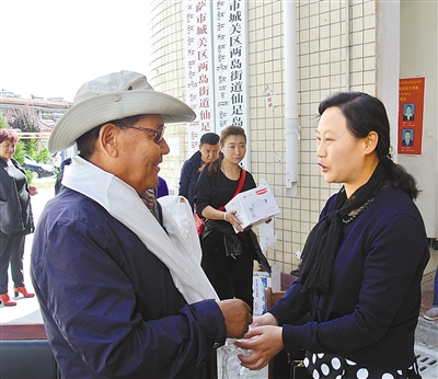 图为两岛街道办事处干部亲切慰问老党员代表。 记者 次旺 摄