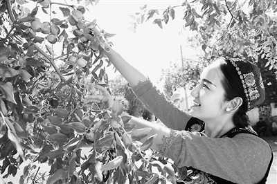 近日,新疆哈密市20多万亩大枣陆续成熟,枣农开始采摘晾晒,乡间一派丰收景象。今年,哈密市红枣结果面积达到23万亩,目前已有5.5万亩红枣通过国家有机食品生产基地认证。图为哈密市五堡镇高得格村维吾尔族妇女在采摘大枣。