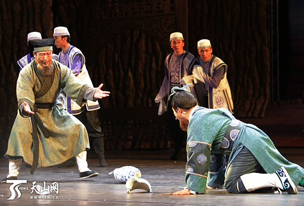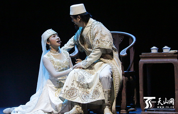 《别失八里》音乐剧演出场景,索菲亚与养父达吾德。