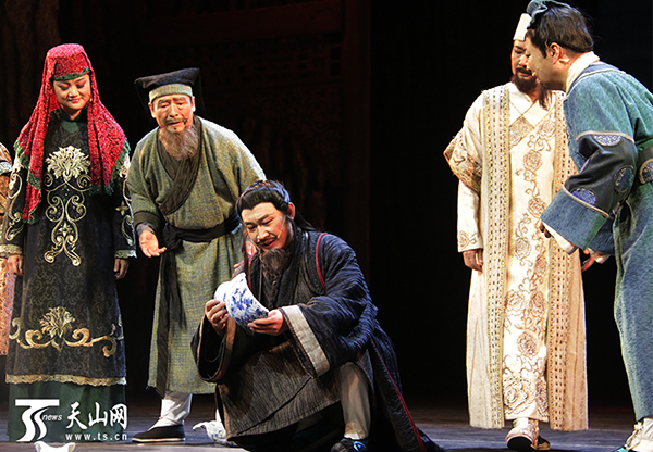 《别失八里》音乐剧演出场景,赵婴鉴定被摔坏的瓷器。