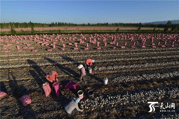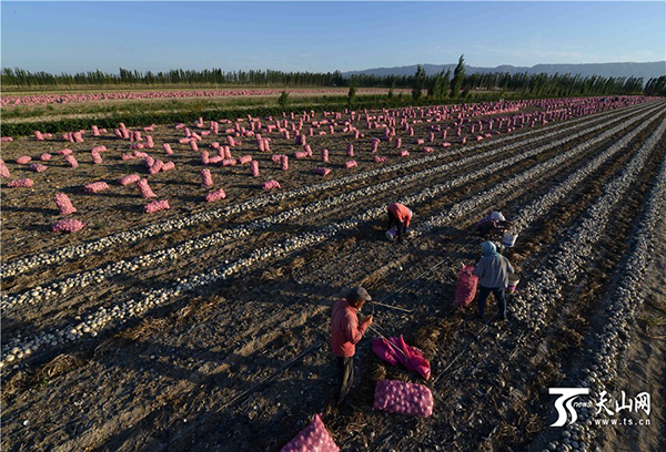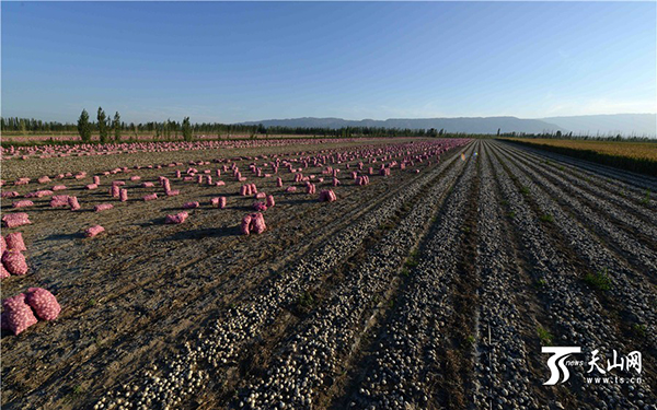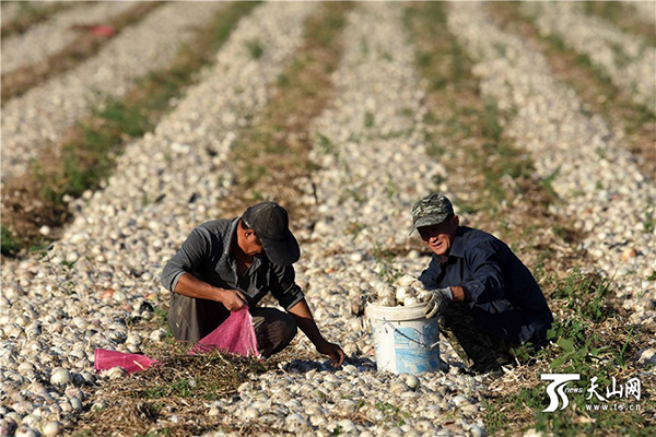 天山网讯(巴音郭楞日报记者确·胡热摄影报道)2016年9月2日,新疆巴州焉耆回族自治县七个星镇夏热采开村农民在收获洋葱。时下正值秋收时节,新疆巴州一派丰收的景象,农民种植的籽用葫芦、玉米、辣椒、洋葱等农作物相继进入成熟期,当地农民加紧采摘、收获,构成一幅多彩秋收图。