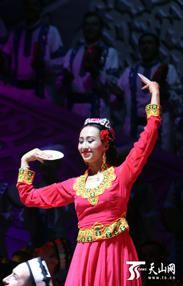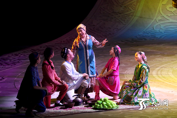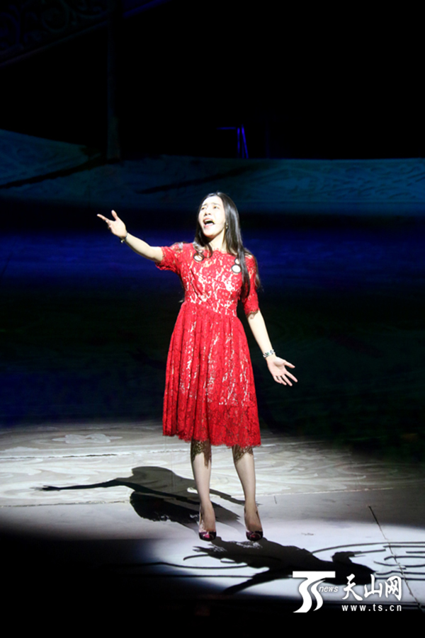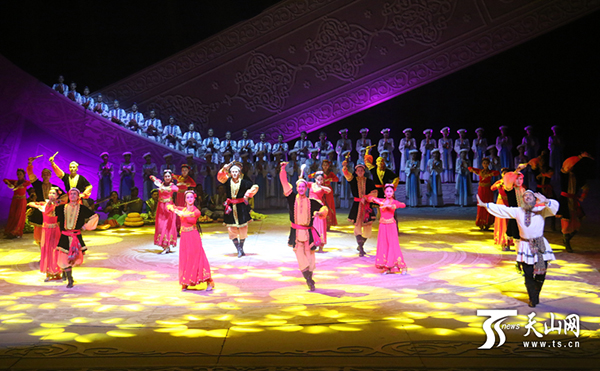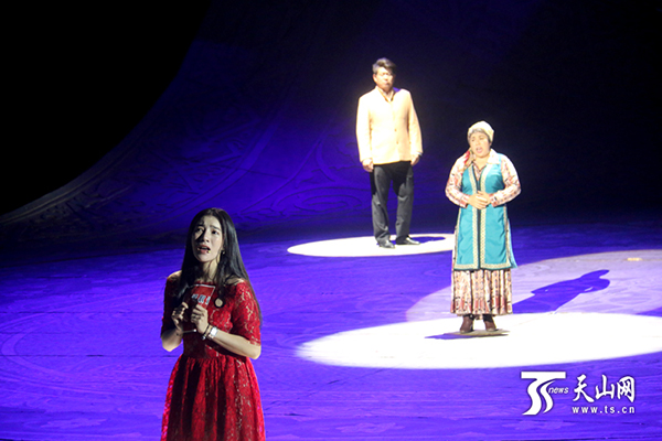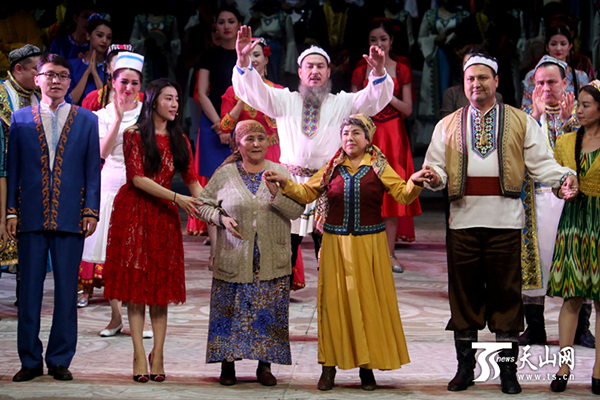 9月8日,大型歌舞剧《情暖天山》在北京保利剧院精彩上演,该剧故事原型阿尼帕·阿力玛洪来到现场,与演员们一起完成了演出。