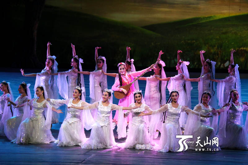 天山网讯(记者朱凯莉 张新军摄影报道)驼铃声声、大漠苍穹、萨塔尔琴苍凉低沉的音色伴随着高昂的歌声,将观众带入了迷人的西域风情。9月20日晚,以“艺术编织丝路美景”为主题的第五届中国—亚欧博览会“中外文化展示周”开幕式大型音舞诗画《木卡姆印象》在新疆艺术剧院木卡姆剧场上演。