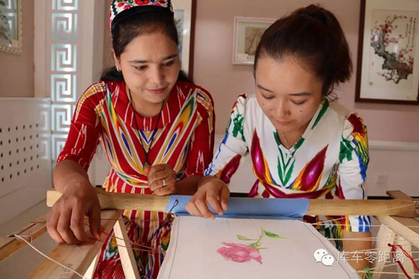 去年11月,国家级非物质文化遗产项目苏绣代表性传承人——姚惠芬与库车“刺绣姐妹”结对子,每周通过网络视频对绣娘进行技术指导。河南安绣也在库车建立了刺绣文化产业基地,为全县绣娘提供技能培训。