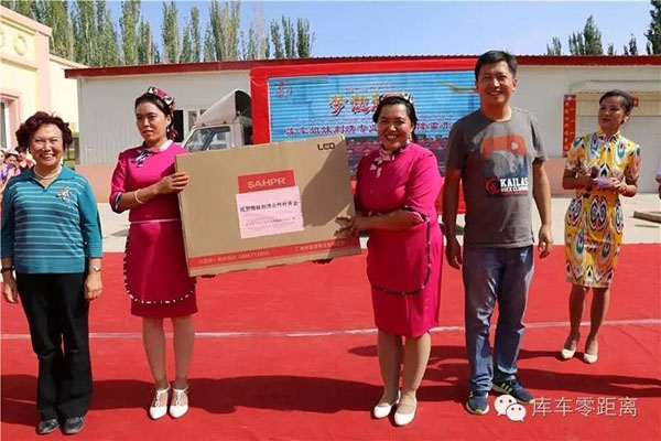 自治区人社厅住村工作组为刺绣合作社赠送电视。(图片:库车零距离)