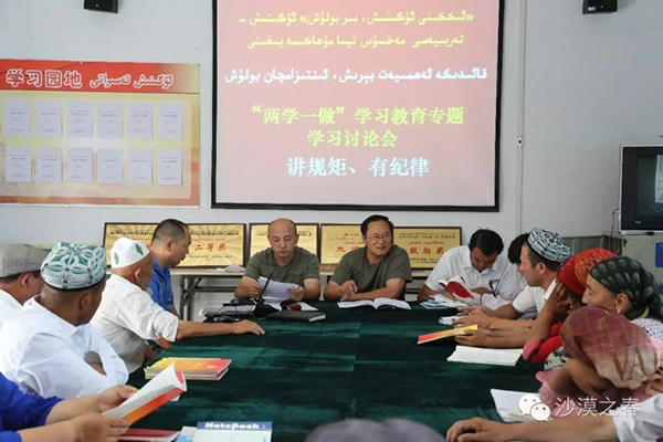 住村期间,托万塔瓦尔克斯克村工作组带领村全体党员扎实开展“两学一做”学习教育,认真践行“两学一做”,在学中刷新认知,在干中磨砺担当,以社会稳定和长治久安总目标为引领,在强基础强基层上下功夫、在凝聚人心上下功夫,工作组带领村党员、干部,通过学习讨论、开展宣讲、精准扶贫、民声走访、帮扶慰问等多种形式与村民沟通交流,真情帮扶、真心解困。无论是在村委会、在房前屋后、在村民家里、田间地头都能看到工作组成员的身影。工作组和村民已经从陌生变得熟悉,从见面拘谨变得有说有笑,互交朋友、互结对子,大家的距离更近了,工作组听到的真话实话也多了……