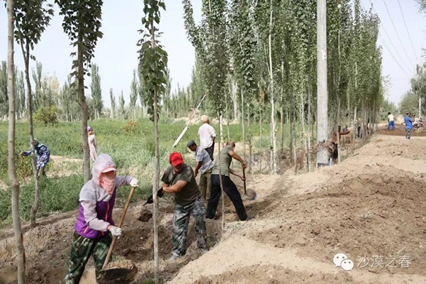 帮助村民平整土地。