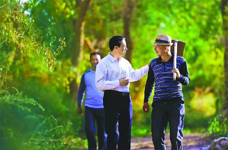 10月16日,周爱武与村民阿里甫唠家常,了解他的生产生活情况。
