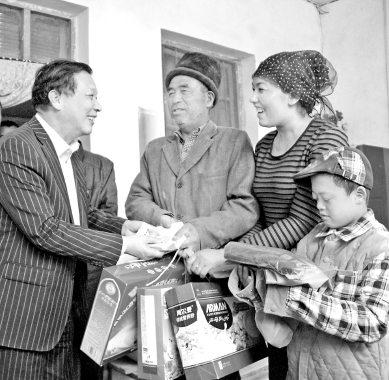 洁丽雅集团董事局主席石昌佳到帮扶对象家中走访。图片由新疆新越丝路有限公司提供。