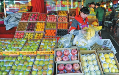 老板涂建刚说,现在卖得好的是苹果、香梨、蜜橘等,零售价每公斤都不超过10元,每天出货量能超过400公斤。