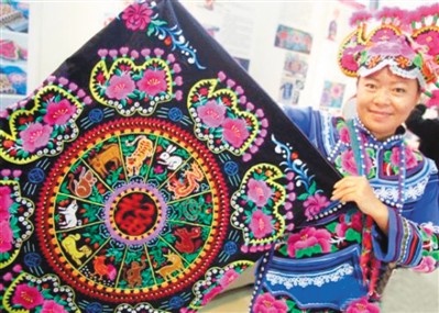 日前,由云南艺术学院承办的“中国非物质文化遗产传承人群研培计划”普及培训班在昆明结业。来自云南各地的七十名非遗传承人进行了为期一个月的“充电”,并誓言在创新中传承民族文化。图为非遗传承人展示结业作品。