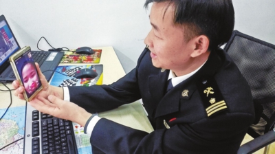 11月9日20时,在阿拉山口口岸的乐宏与远在600多公里外的迪丽努尔阿依视频聊天。