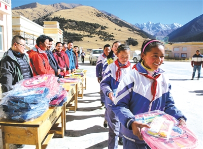双流发动社会爱心人士向藏区贫困孩子捐赠的学习用品
