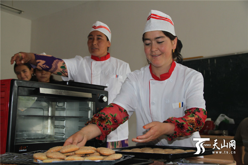 为让村民掌握一技之长,增强致富技能,工作队邀请自治区农科院和县、乡农林牧等方面的专家,到村子里进行现场示范讲解;组织75名村民参加畜牧养殖、电气焊工等专业培训班;邀请乌鲁木齐高级糕点师茹仙古丽到村子开办糕点烘焙技术培训班等。如今,选择自主创业的村民是越来越多,村民吾买尔江在村委会门前开了打馕店,买买提•马木提承包了富民安居房铁艺制作的活,古再丽努尔也开起了烘焙小店……