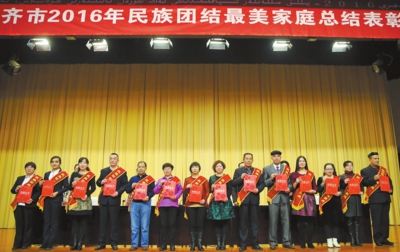 新疆网讯(记者王丽娜 蒋晓摄影报道)12月26日上午,乌鲁木齐市召开2016年“民族团结最美家庭”总结表彰大会,对100户“民族团结最美家庭”进行了表彰。