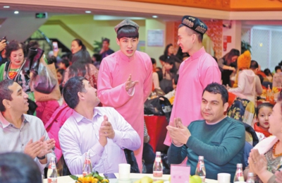 当日,固原巷社区与翠泉东社区联合举行庆新年家庭聚会,两社区之间自发结对认亲的十对居民一起逛巴扎、尝美食。