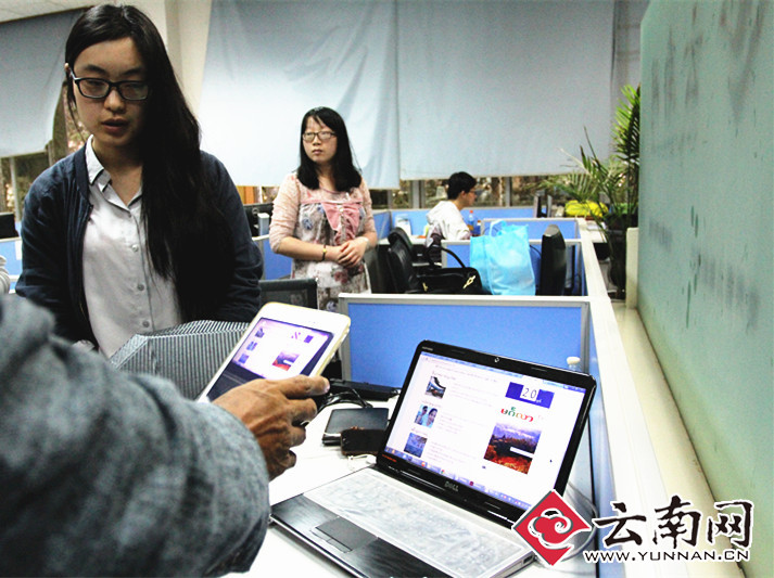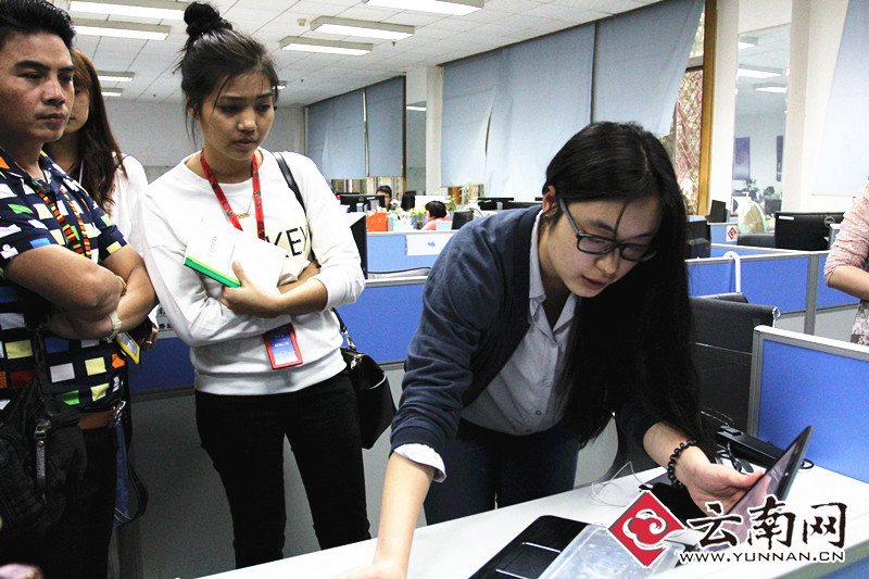 缅甸记者向云南日报报业集团记者展示缅甸的新闻APP