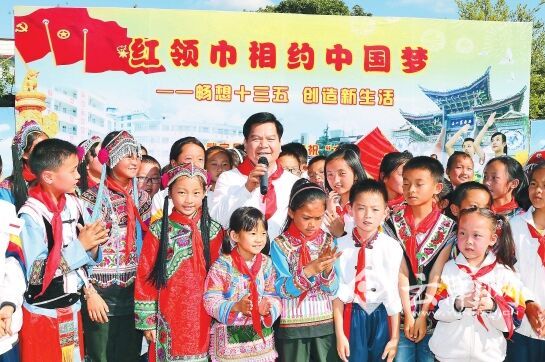 李纪恒在武定县近城小学参加少先队入队仪式时,向全省各族少年儿童致以节日的问候。记者 雷桐苏 摄