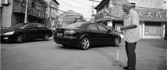 7月25日中午,气温接近35℃,龚大伯拄着三脚拐杖,又站到了路口。