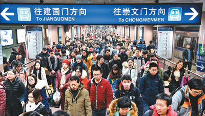 图为今年春节前北京地铁2号线北京站内的客流。新华社记者 罗晓光摄