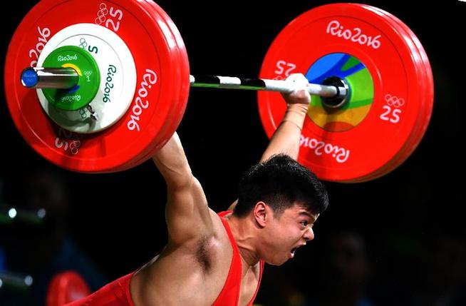 8月7日,龙清泉在挺举比赛中试举。当日,在2016里约奥运会举重男子56公斤级决赛中,中国选手龙清泉以307公斤的总成绩夺冠,并打破世界纪录。 新华社记者程敏摄