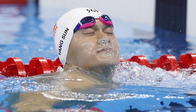 8月7日,孙杨在比赛后。当日,在2016年里约奥运会游泳比赛男子200米自由泳半决赛中,中国选手孙杨以1分44秒63的成绩获得小组第一,晋级决赛。新华社记者费茂华摄