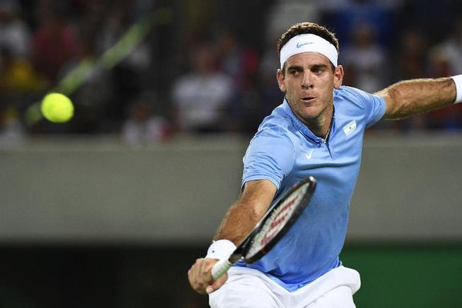 8月7日,德尔波特罗在比赛中回球。当日,在2016年里约奥运会网球男单第一轮比赛中,塞尔维亚选手焦科维奇以0比2不敌阿根廷选手德尔波特罗。 新华社记者刘杰摄