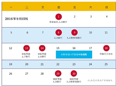 这其中有三个重点日拥堵指数可能会逼近9.0。分别是9月1日早高峰,由于开学和4、9限行两个因素叠加,早高峰会非常拥堵。9月14日,中秋节之前最后一个晚高峰,送月饼买东西聚餐会友出行集中。9月29日,国庆节前的周四,4和9尾号限行本来就导致上路车多,再加上部分人提前放假以及进京的车辆增多,晚高峰预计会严重拥堵。