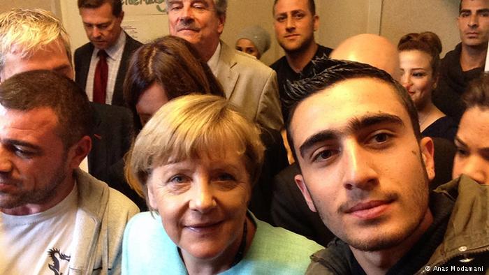 资料图:叙利亚难民与默克尔自拍。