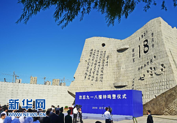 9月18日,勿忘“九一八”撞钟鸣警仪式在辽宁省沈阳市“九一八”历史博物馆举行。 新华社记者 杨青 摄
