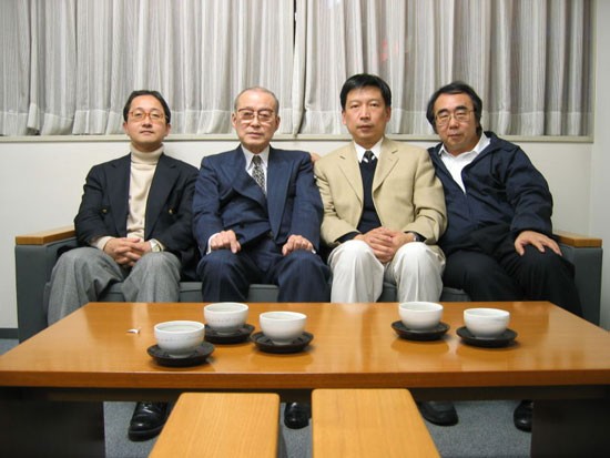 2004年12月7日,即将在东京高等法院出庭作专家证言前,管建强与731细菌战中国原告诉讼辩护团日本律师在东京的土屋公献律师事务所合影。左起荻野淳律师、土屋公献律师(731细菌战中国原告诉讼辩护团团长,前日本律师协会会长)、管建强、一濑敬一郎律师(731细菌战中国原告诉讼辩护团事务局长)。