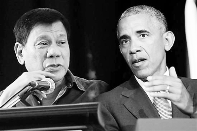 菲总统杜特尔特与美国总统奥巴马。(资料图片)