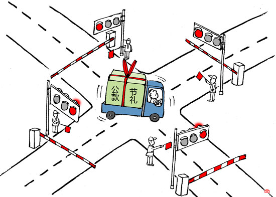 35岁的王平家在北京四环外,工作单位在二环内,每天开车上班。从中秋前一个星期开始,王平就察觉到上班路上开始变得拥堵,原来半小时的路程,现在经常得开40分钟。为了不迟到,他不得不每天提前15分钟起床。“早几年一快到中秋,马路上外地牌照车辆就多了起来,爆堵,据说都是进京送礼闹的。八项规定出台后,明显感觉中秋前后没那么堵了。今年感觉又堵得厉害,不知是不是‘送礼风’回潮了。”