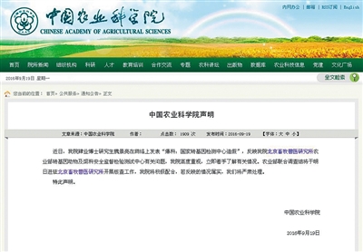 昨日,中国农业科学院在其官网发布声明称,农业部联合调查组今日将进驻核查。