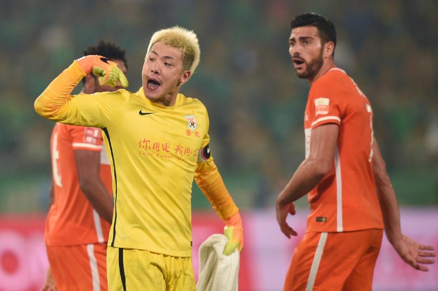 新华社北京9月25日体育专电(记者肖亚卓)在25日进行的一场中超第26轮焦点战中,凭借着门将王大雷的神勇发挥,山东鲁能队在上半场就被罚下一人的情况下客场以2:1力克北京国安队,赢下了保级道路上的关键之战。