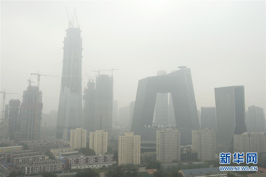 雾霾笼罩的北京东三环附近地区(10月18日摄)。 10月18日16时,北京市气象台发布霾黄色预警信号,预计18日傍晚至19日北京大部地区有中度霾,南部地区有重度霾。 新华社记者 鞠焕宗摄