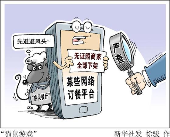 记者调查发现,一些商家玩猫鼠游戏,每次媒体曝光后,网络订餐平台便将无证照商家下架,可没过多久,新的类似问题又重新出现,周而复始。