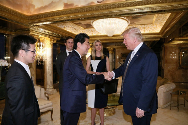 美国大选结局强烈震动了日本,安倍政府惊慌之余紧急与特朗普团队联系,安倍改变了去秘鲁参加APEC峰会的行程,专门在纽约停留,“觐见”特朗普。