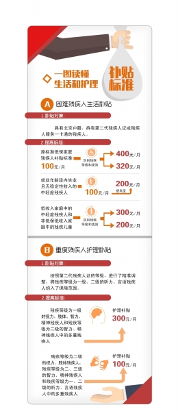 昨天,北京正式发布《北京市困难残疾人生活补贴和重度残疾人护理补贴制度实施办法》,标志着本市已建立起残疾人专项福利制度。