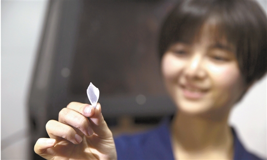经过这不均匀的“日光浴”后,黄丽媚把玻璃中间的材料拿出来,之前的液体已经变成一张扁平的薄膜。