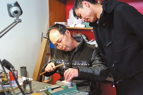 2005年,儿子丁剑韬从云南大学计算机网络专业毕业,本来在昆明有一份稳定的工作的他,一年后他却毅然选择回到了父亲身边一起打理银饰店。丁剑韬说:“从小在父亲身边耳濡目染,对制银早就产生了感情,父亲的手艺更不能失传,我还是决定要回来。”