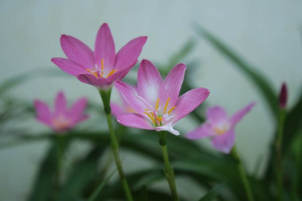 “夜来风雨声,花落知多少。”谁都知道,常见的花草,一经狂风暴雨吹打,就会枝残叶败,落英缤纷。但是有一种奇怪的小草花,它偏偏喜欢在风雨交加的时候,昂首怒放。粉红色的小花,一团团,一簇簇,象熊熊燃烧的烈火,开得狂,开得欢,开得烂漫,开得惹人陶醉。因此,人们就形象地称她为风雨花。也称韭莲、赛番红花(贵州、广西习称),在丘北当地多称粉色水仙花。