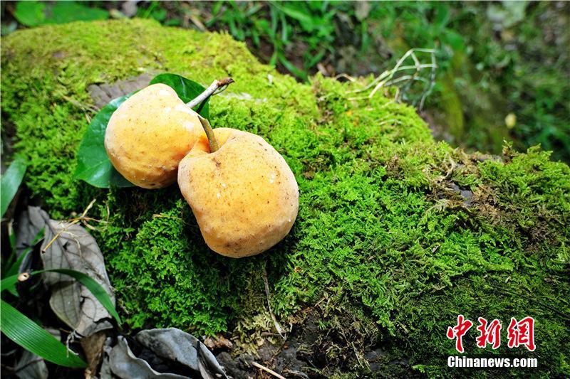 近日,重庆綦江区发现了一株树高约30米的野生南川木波罗母树。据了解,南川木波罗是我国特有桑科木波罗属常绿乔木,目前仅在重庆南川、綦江两地有零散分布。2004年,南川木波罗被《中国物种红色名录》确定为“极危”物种,比国家一级保护植物,著名的“活化石”银杉、水杉等濒危物种还要高一个等级。图为成熟的南川木波罗呈橙黄色,色泽、肉质和形状酷似面包。陈星宇 摄