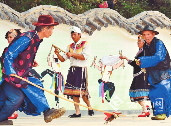 昨日,文山壮族苗族自治州砚山县组织参加砚山壮族“三月三歌节”的宾客、专家学者以及游客,前往该县者腊乡“中国传统村落”批洒村观看壮族传统祭祀舞蹈“棒棒灯”。发源于批洒村的“棒棒灯”是一种融宗教、文艺、体育、娱乐于一体的壮族民间艺术活动,迄今已有1300多年的历史。批洒村“棒棒灯”在2009年被列入云南省级非物质文化遗产名录。