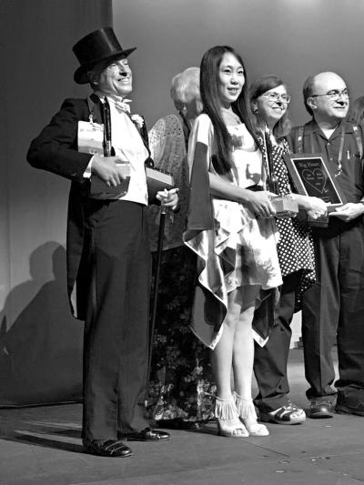 图为郝景芳(中)在领奖现场。