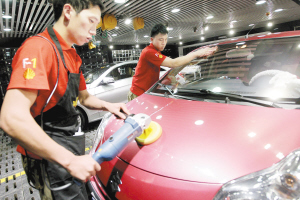 中水洗车和无水洗车得到广泛运用。记者李海曦摄